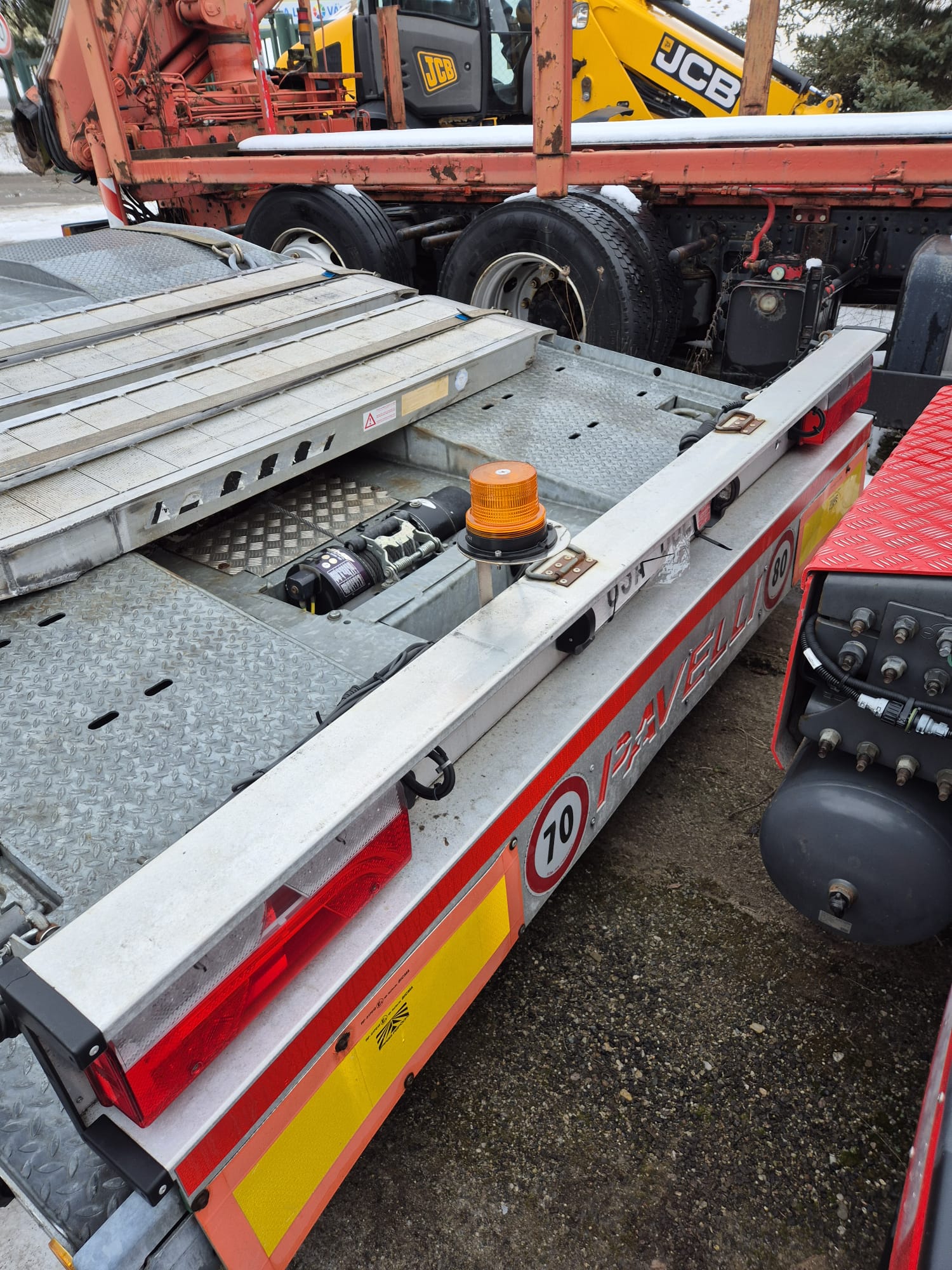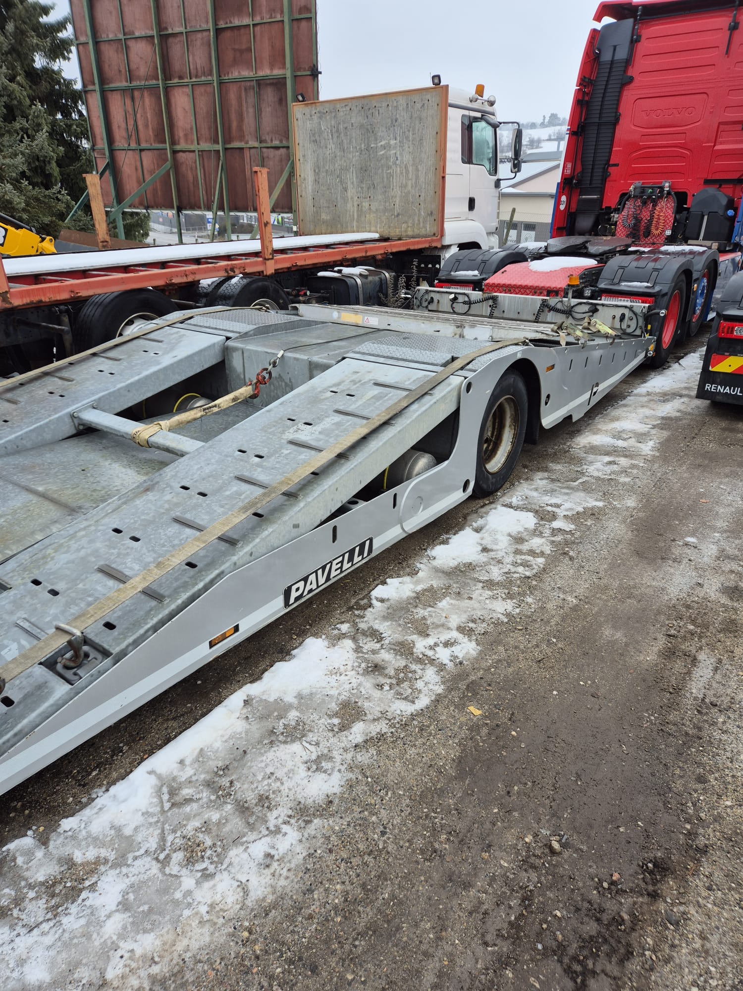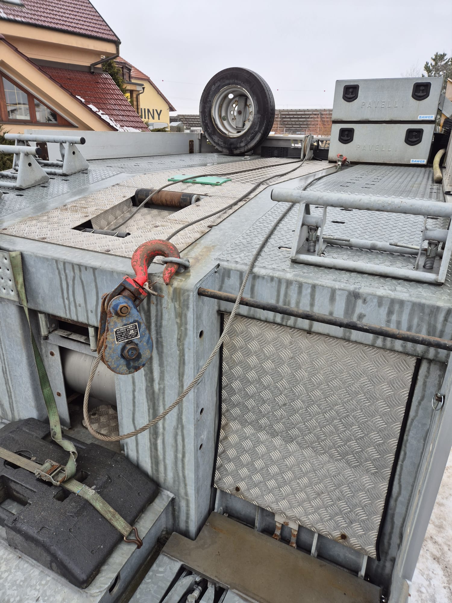PAVELLI podvalník 1x ossý, náprava BPW ECO PLUS, pneu ca: 90%, pozinkované, boky lakované, 2x navijáky, dálkové ovládání, 2x ALU nájezdy, elektrohydraulika, prostřední plošina zvedací pro bezpečné naložení tahače, málo ježděný TOP Stav. Po prvním majiteli.Â