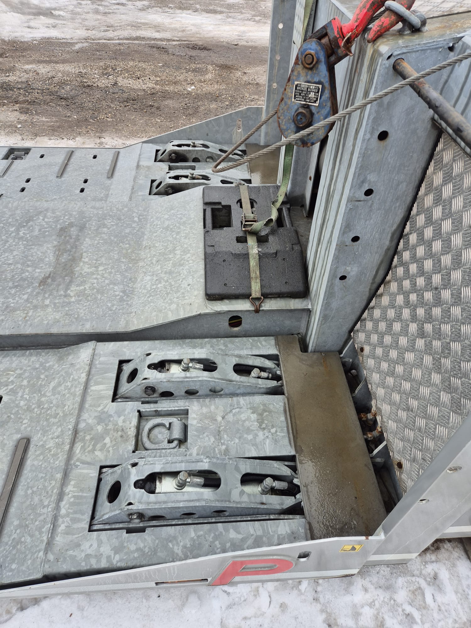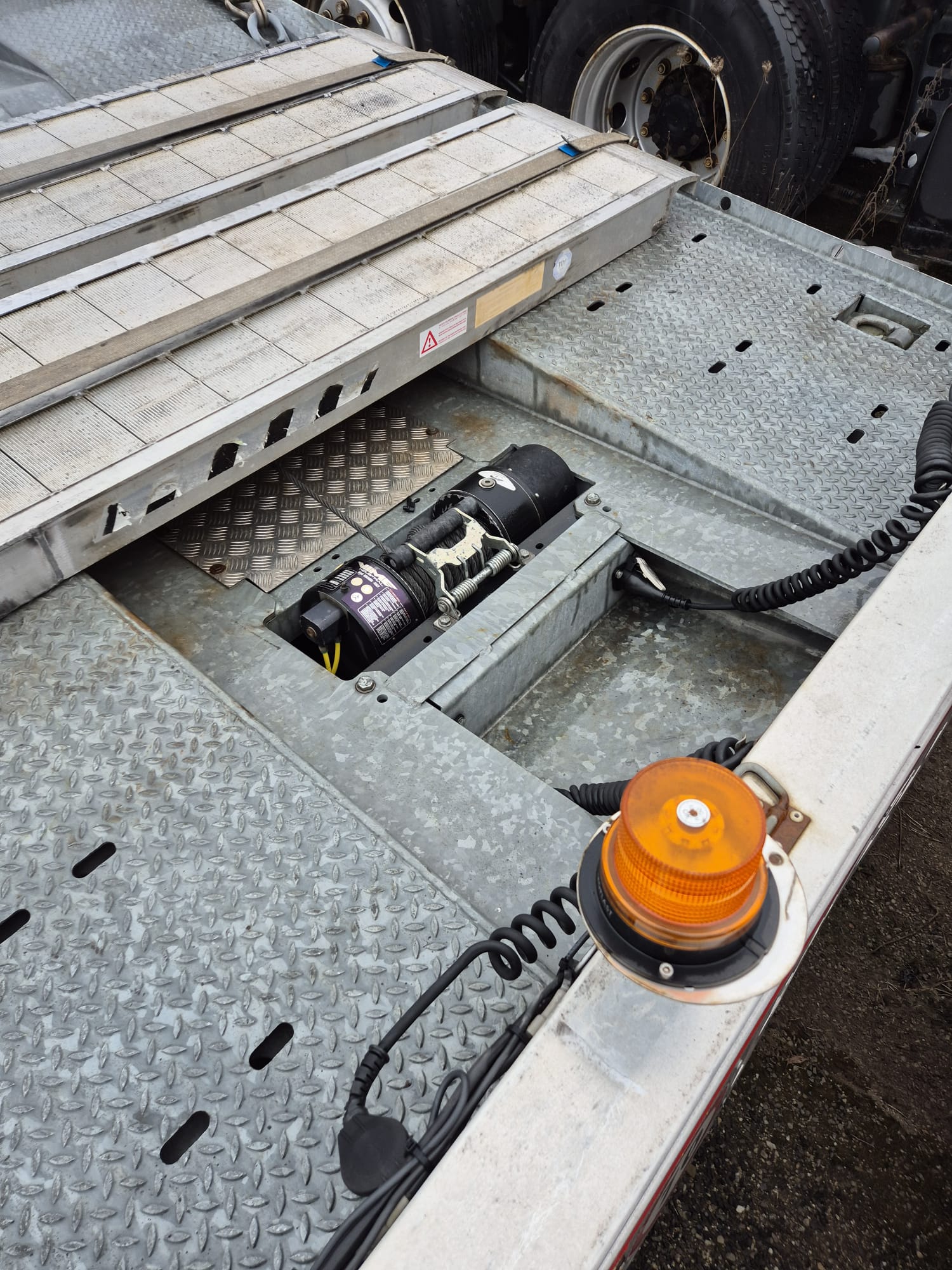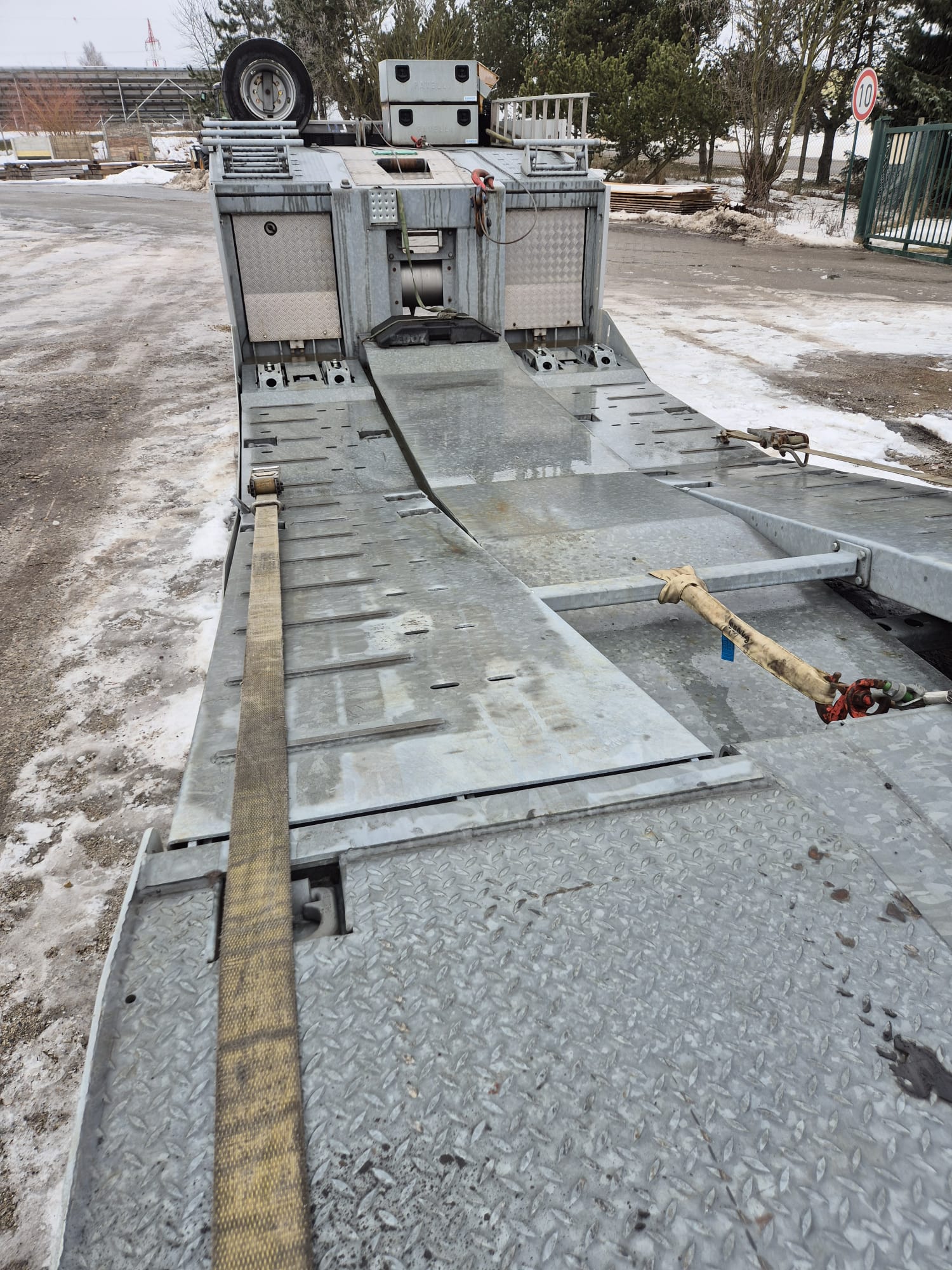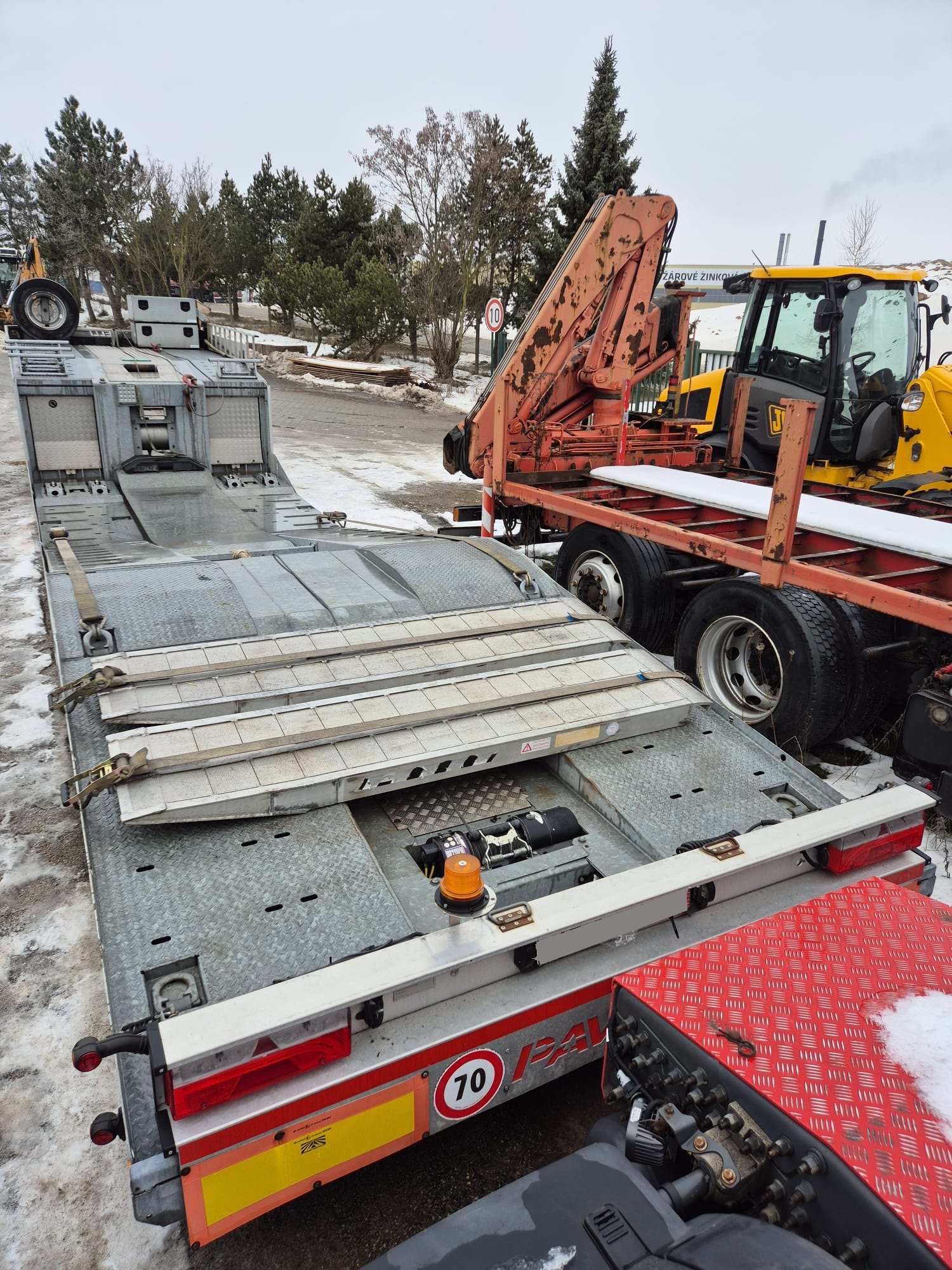 PAVELLI podvalník 1x ossý, náprava BPW ECO PLUS, pneu ca: 90%, pozinkované, boky lakované, 2x navijáky, dálkové ovládání, 2x ALU nájezdy, elektrohydraulika, prostřední plošina zvedací pro bezpečné naložení tahače, málo ježděný TOP Stav. Po prvním majiteli.Â