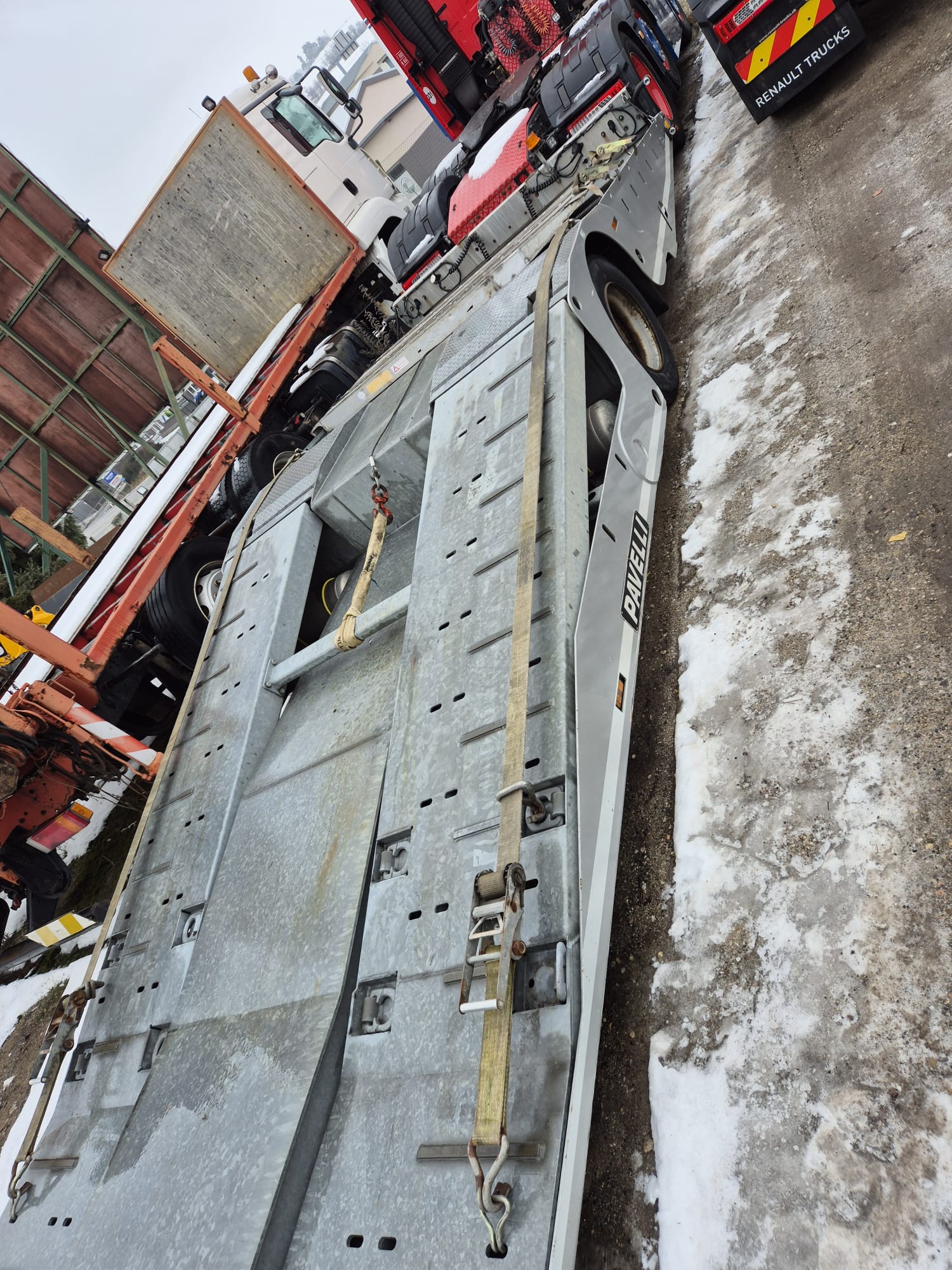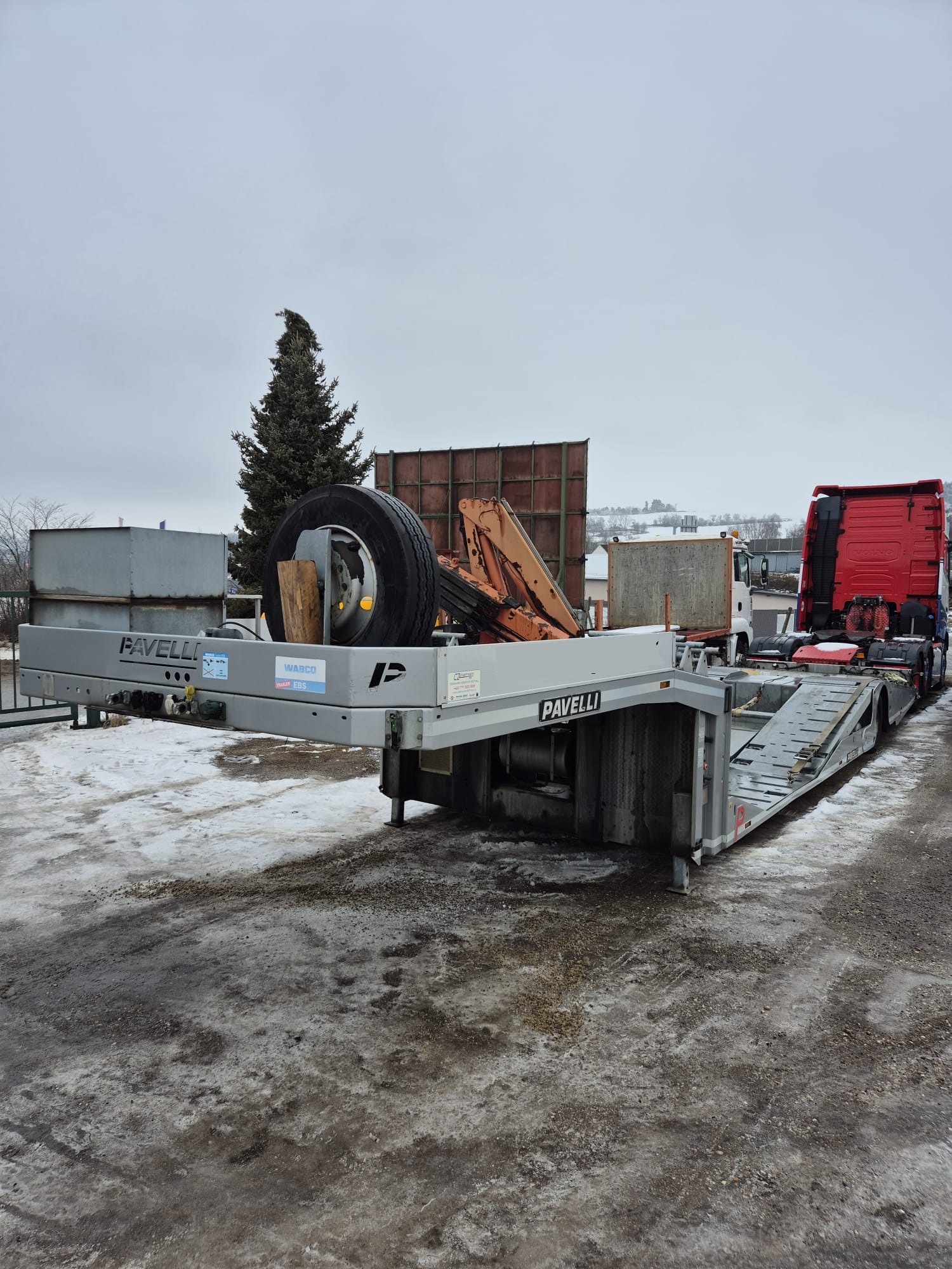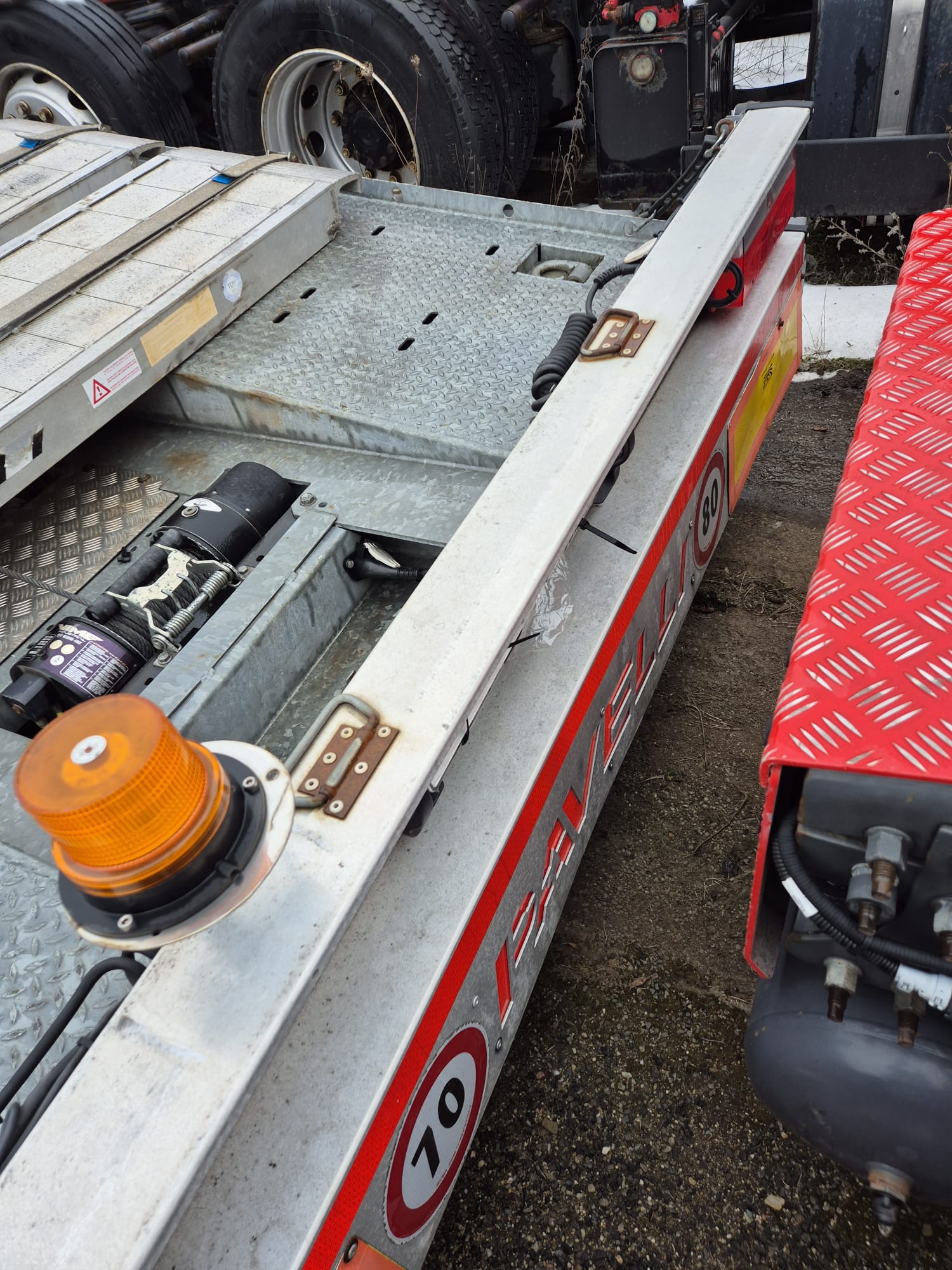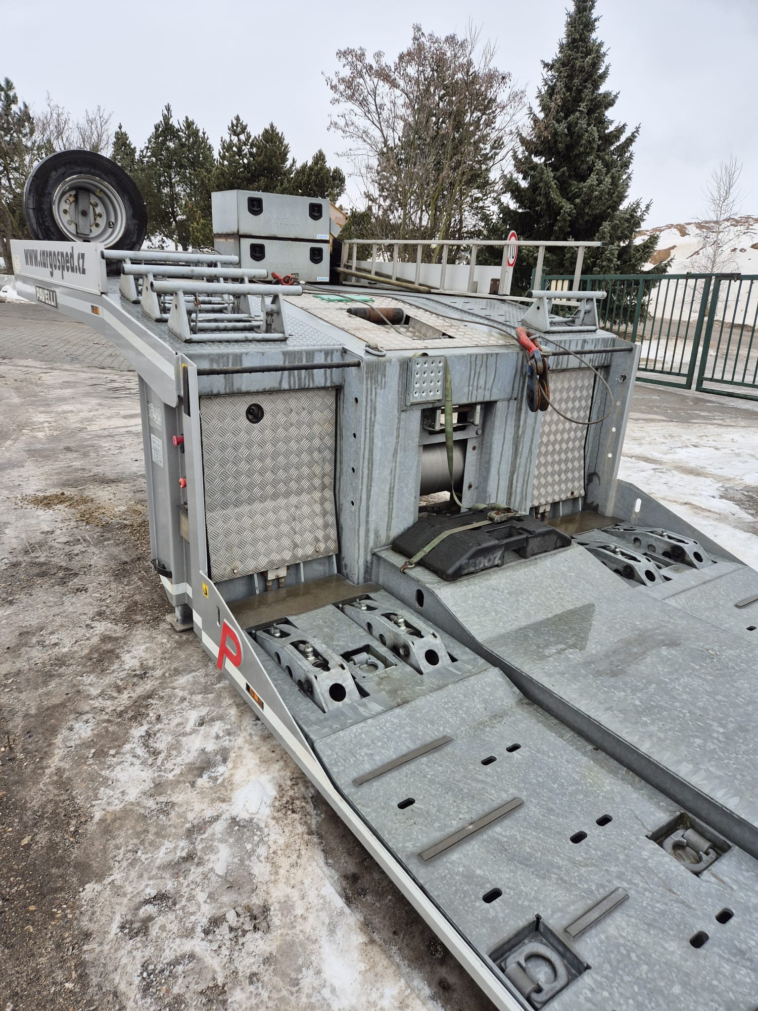 PAVELLI podvalník 1x ossý, náprava BPW ECO PLUS, pneu ca: 90%, pozinkované, boky lakované, 2x navijáky, dálkové ovládání, 2x ALU nájezdy, elektrohydraulika, prostřední plošina zvedací pro bezpečné naložení tahače, málo ježděný TOP Stav. Po prvním majiteli.Â