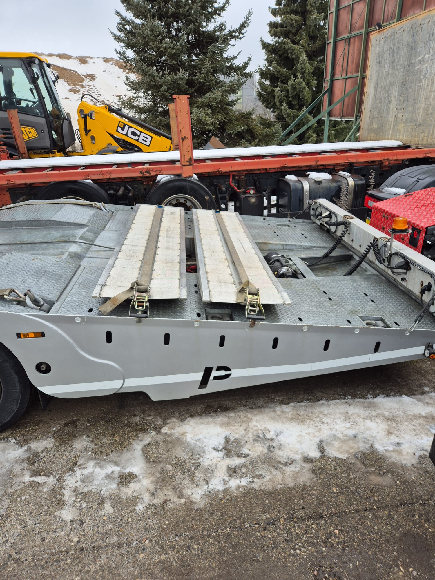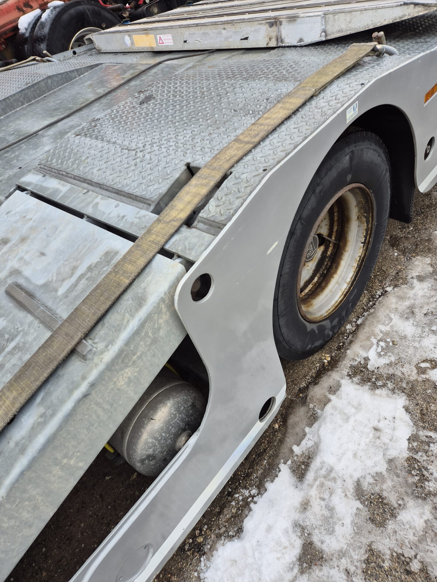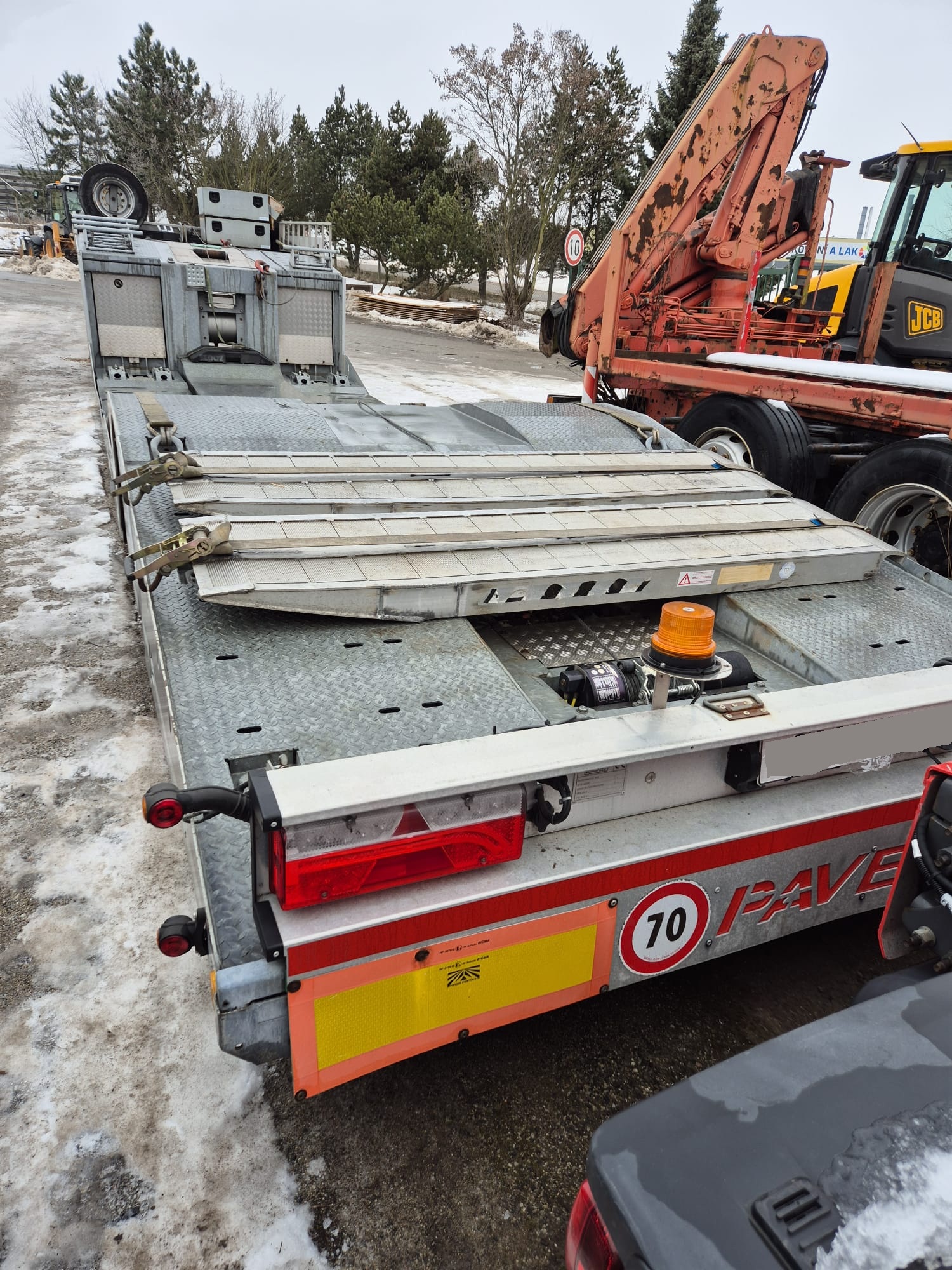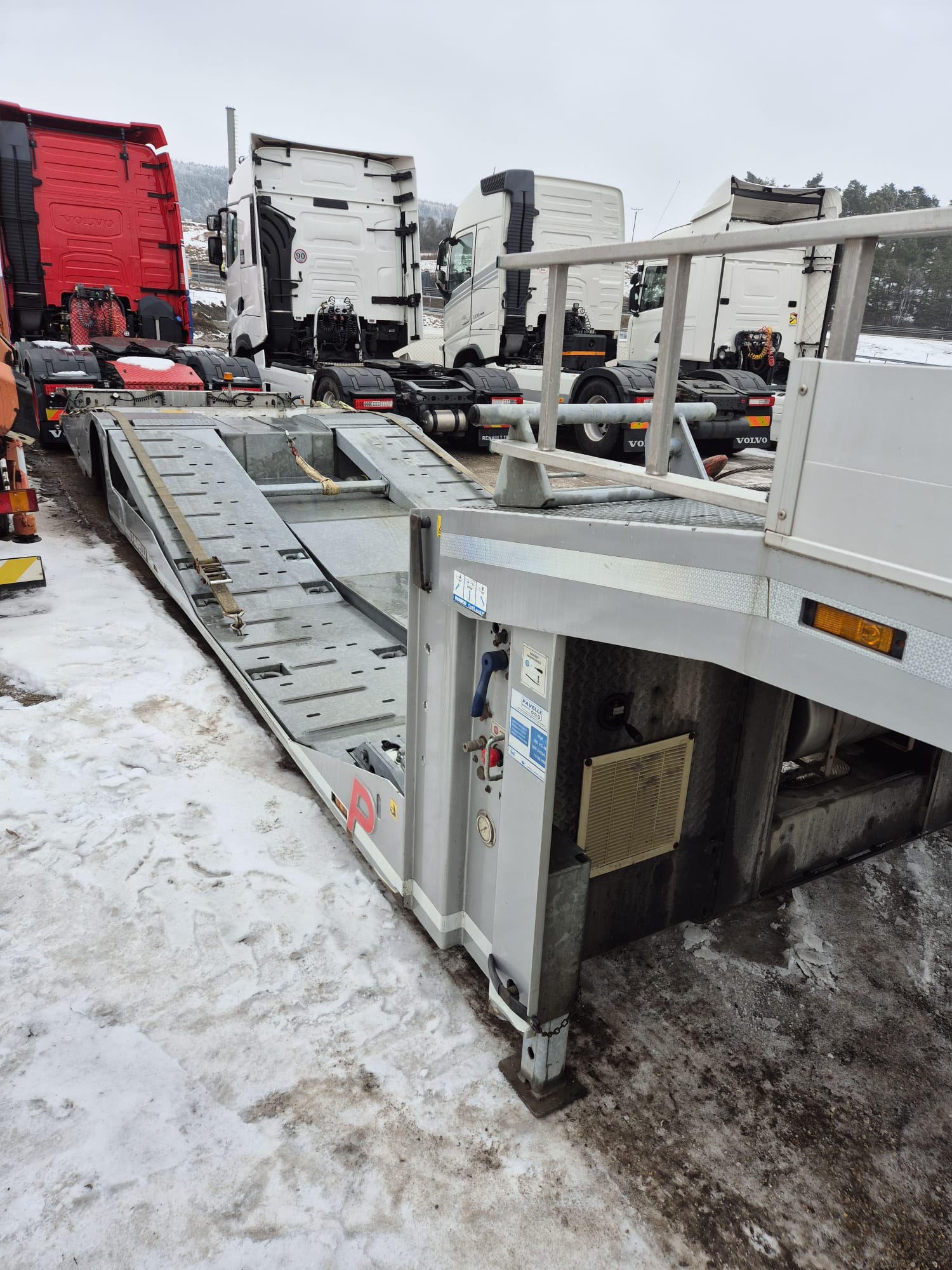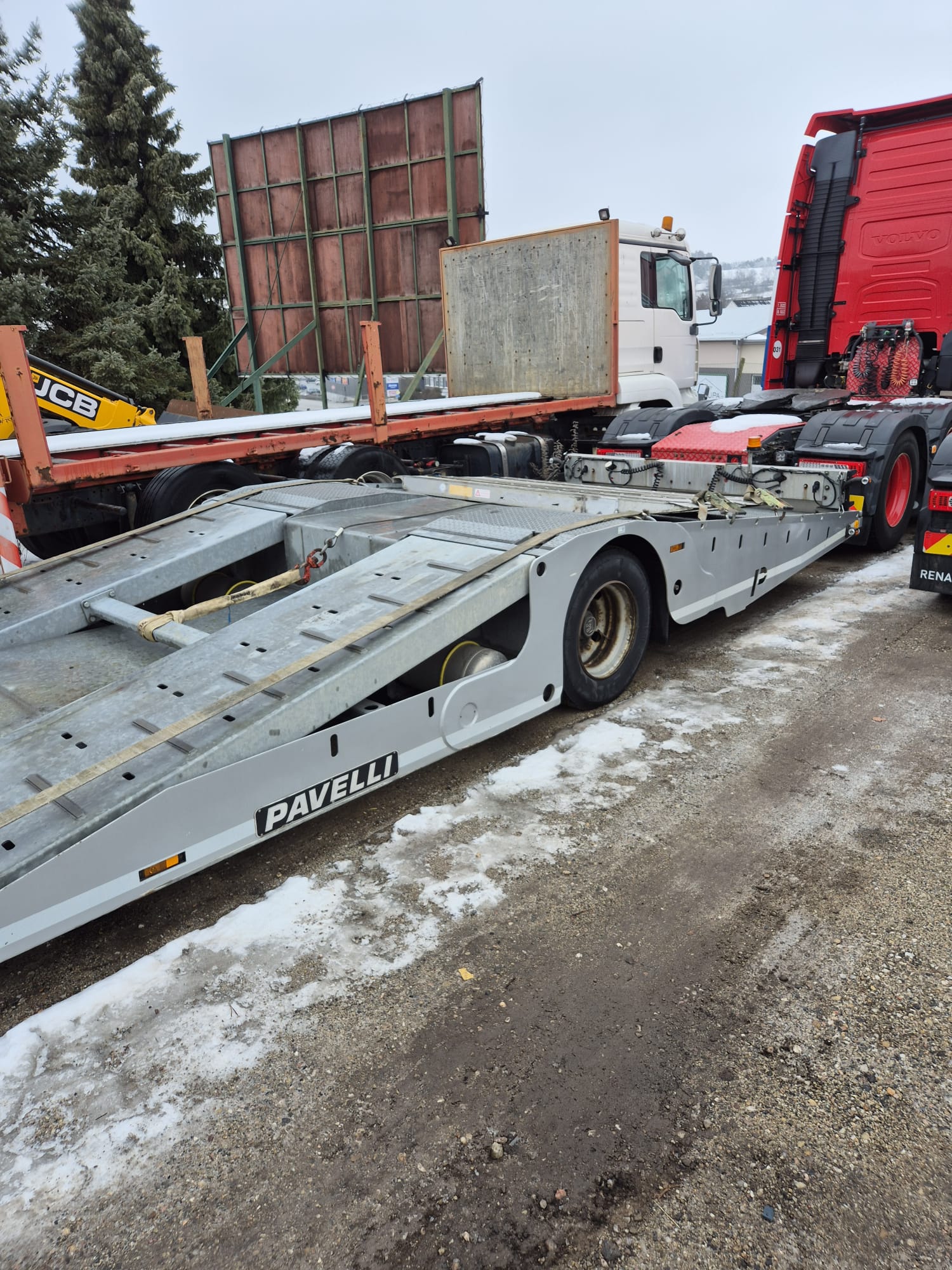 PAVELLI podvalník 1x ossý, náprava BPW ECO PLUS, pneu ca: 90%, pozinkované, boky lakované, 2x navijáky, dálkové ovládání, 2x ALU nájezdy, elektrohydraulika, prostřední plošina zvedací pro bezpečné naložení tahače, málo ježděný TOP Stav. Po prvním majiteli.Â